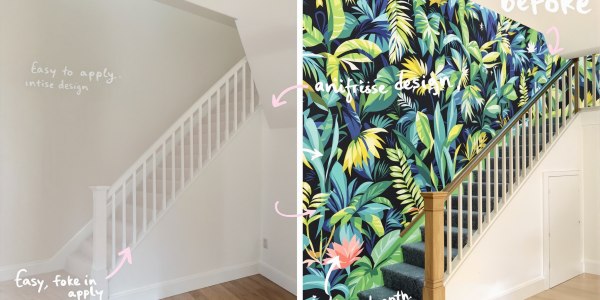 La cage d'escalier est l'espace le plus ingrat et déprimant de la maison. Sauf quand on la décore avec un papier peint panoramique.